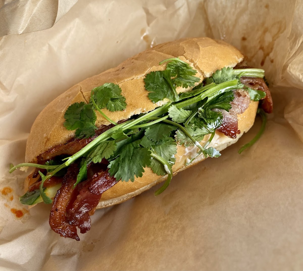 One of the restaurant's standout dishes is the Lemongrass Pork Báhn-MI, which has quickly become a fan favorite. The savory combination of tender pork, fresh herbs, and the distinct citrusy flavor of lemongrass creates a mouthwatering balance. For those who prefer something a bit more classic, the Pork Banh Mi is another great option, featuring seasoned pork paired with pickled vegetables, all encased in a soft baguette. Vegetarians won't be left out either - the Banh-MI Chay offers a satisfying, plant-based alternative without compromising on taste or texture.